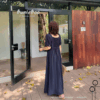 👗 ทรง: เดรสยาว A-line / แขนห้าส่วน / คอวีลึก / เอวสูง